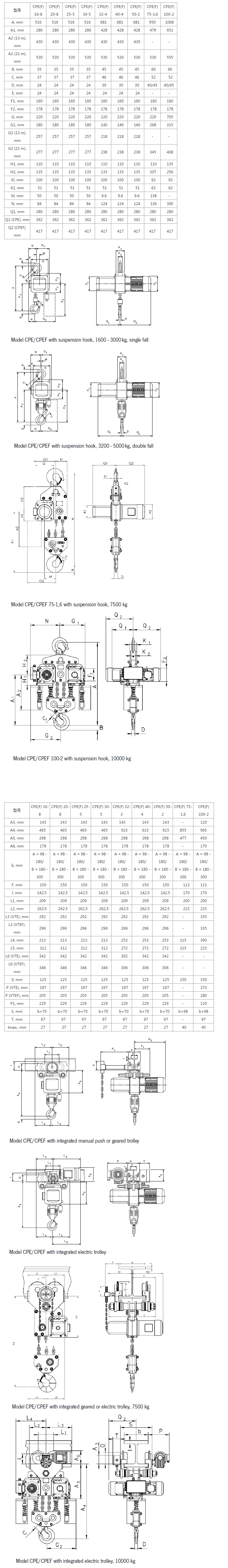Rated load 1600-10000 kg This series of electric hoist products are designed to meet the professional application of high quality products. Efficient and durable, the body is composed of three main parts, easy to maintain and low maintenance cost. Product features The gearbox does not require additional lubrication maintenance. The motor is equipped with thermal overheat protection device as standard. The heavy duty cage motor brake adopts a safer normally closed structure. Only when it is powered on, the brake pressure of the spring can be opened by the action of the electromagnetic coil. Even in the case of sudden power failure, it can ensure that the weight will not slide freely. The protection grade of the motor is IP54 and the insulation grade is f. The protection grade of control handle is IP65. The lifting chain wheel is designed with 5 chain sockets and made of steel with good wear resistance and high hardness. It can ensure smooth and accurate lifting action when used together with the standard lifting chain. The planetary gear mechanism with oil immersed lubrication makes the work especially stable. The standard lifting chain has a hardened shell and a coating layer, and the perfect cooperation with the body of the gourd can ensure the smooth and accurate operation. The material of the upper and lower hooks adopts anti-aging and high toughness alloy steel. In case of overload, the deformation will occur first without breaking up suddenly, which ensures the safety of users. Overload protection device, easy to adjust Product options Flexible chain bag Stainless steel lifting chain Stainless steel motor brake The upper hook can be rotated 90 degrees Rotary adjustable upper and lower limit device Buffer block ![]()