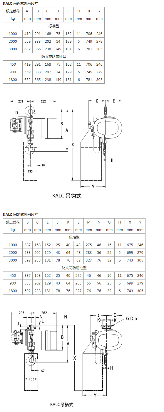 Rated load 450 - 3000 kg Kalc type pneumatic chain block series is your ideal choice for material handling, which can be used in the environment where the electric chain block cannot be operated. Kalc type pneumatic chain block series can provide a variety of control speed, more cost-effective than electric hoist. Product features Kalc type pneumatic chain block adopts die-casting aluminum shell and closed bearing, light weight, strong and durable, easy to carry. Using fine cutting and heat treatment processing gear transmission mechanism, with quiet and efficient operation. With Weston load braking device, the weight can be accurately positioned. Overload protection device can prevent overload. The pneumatic motor with 8 blades has high torque and smooth operation. Built in muffler can reduce noise. Equipped with operating handle, it can accurately position the weight. The precise design of the throttle valve can measure the air pressure and make the operation more stable. Can operate at extremely high temperatures - can operate at high temperatures without additional protection. Provide higher speed requirements - for very demanding applications, kalc pneumatic chain block series can provide higher speed. Keep away from the danger of electric shock - air pressure is the power source of pneumatic hoist, so it has a significant advantage of keeping away from electric shock compared with electric hoist. Easy to maintain - compared with electric hoist, there is no contactor, transformer, motor components, fuse and other accessories need to be replaced. As long as providing high quality air source and lubrication, Yale pneumatic chain block series is very easy to maintain. Product options Fireproof flower option - can be used in the presence of combustible substances. ![]()