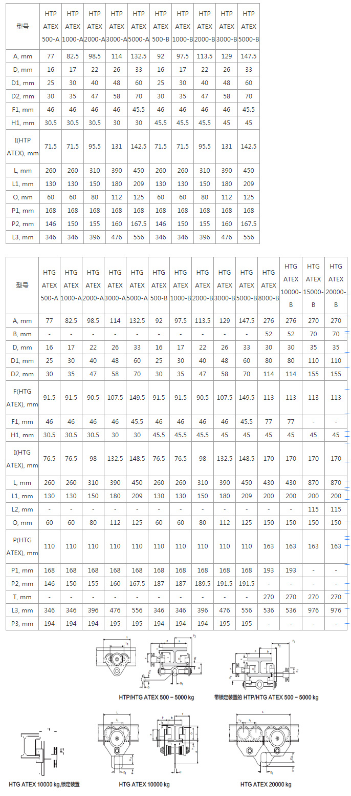 Rated load 500 - 20000 kg This kind of trolley of Yale CDMD hoist, combined with manual or electro pneumatic hoist equipment, can accurately position and move easily under heavy load. Product features The design of the trolley wheel (high grade only) ensures flexible rolling under the inclination of the lower edge of I-beam of 14% (DIN 1025-1 standard). At the same time, the use of lubricated sealed ball bearing can ensure the good operation of the wheel. The width of the trolley can be adjusted to suit a variety of steel beam models (e.g. InP, IPE, IPB). It can be adjusted by rotating the central ring load bar to ensure that the position of the hoist is in the center of the trolley and does not deviate to the left or right. The car complies with UVW standard and mechanical instructions. The explosion-proof model is provided with fireproof flower coating. Car with anti-collision block. HTG is equipped with stainless steel lifting chain. Product options The trolley fixing device ensures that the trolley is fixed on the steel beam when it is empty (for example, on the ship). ![]()
