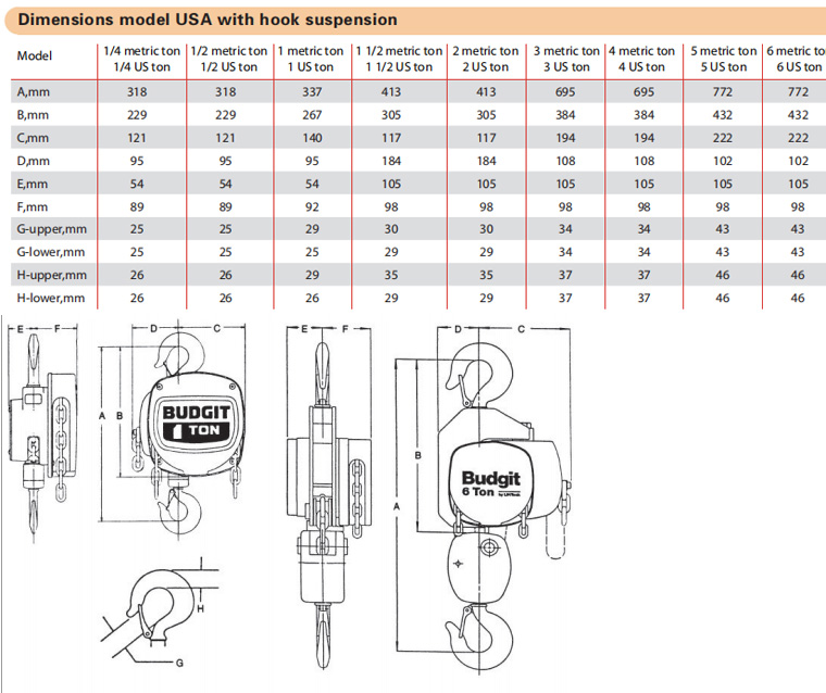USA Hand Chain Hoist with hook suspension