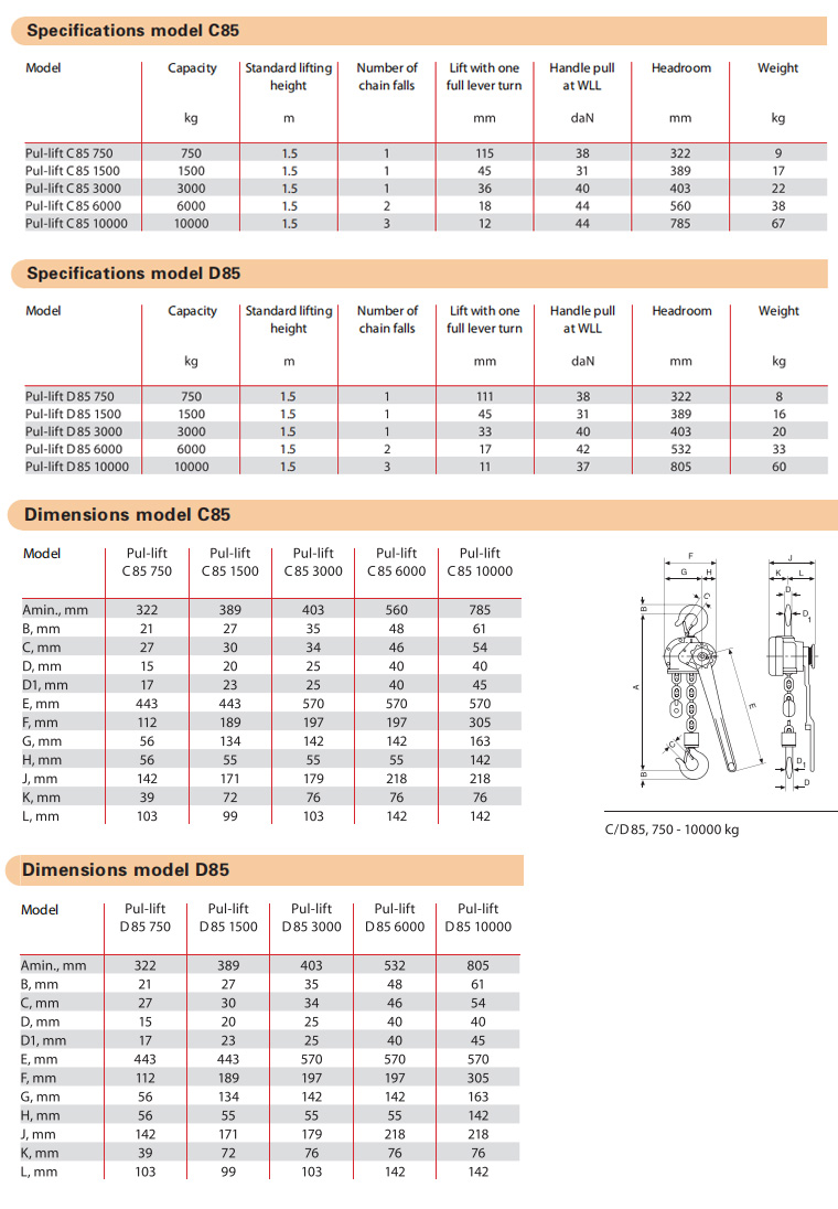 C 85 Ratchet lever hoist with roller chain ;D 85 Ratchet lever hoist with link chain