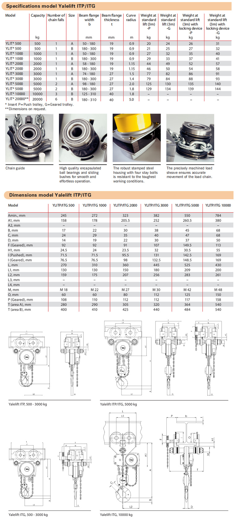 Yalelift ITP/ITG Hand chain hoist with integrated push or geared type trolley