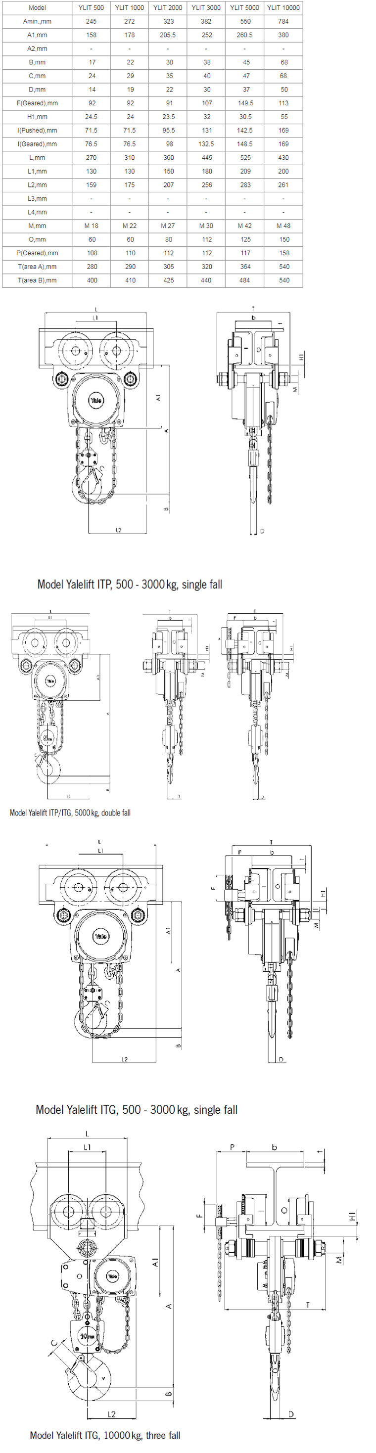Yalelift ITP/ITG Hand chain hoist with integrated push or geared type trolley |