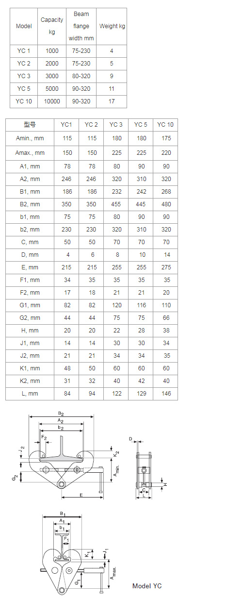 Capacity 1000 - 10000 kg Provides a quick and versatile rigging point for hoisting equipment, pulley blocks or loads. Flexible application due to wide adjustment range. The central threaded spindle allows easy attachment and a safe and secure grip.The spindle can be secured against loosening. Options Can be supplied with shackle (other jaw capacities)