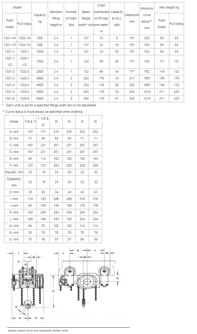 Zephyr Swivel Truck Low Headroom Trolley Hoist |