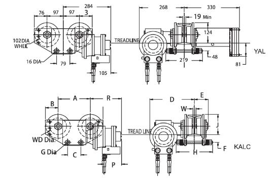 额定载荷 250 - 3000 公斤 产品特性 小车的钢制侧板覆盖车轮位置,在限位位置时保护车轮免受撞击。小车侧板制有螺纹扎,可以安装支架附件。 车轮材质为经过热处理的锻造钢材,弧状轮缘,适合美标锥形工字钢及宽缘工字钢。 车轮轴承选用密闭润滑的滚珠轴承。 垂直布置的摆线减速机通过小齿轮与车轮齿轮啮合。 驱动装置浸润于高质量的润滑油中,可保护齿轮,并使其适应更广泛的温度环境。 8叶片的气动马达可提供高性能转矩,平滑运行及控制。 控制手柄定位准确,负载效率高。 对于危险环境,可提供防火花型。防火花型除拥有具有防火花功能的镀铜车轮外,其他产品特性与普通型无异。 ![]() ![]()