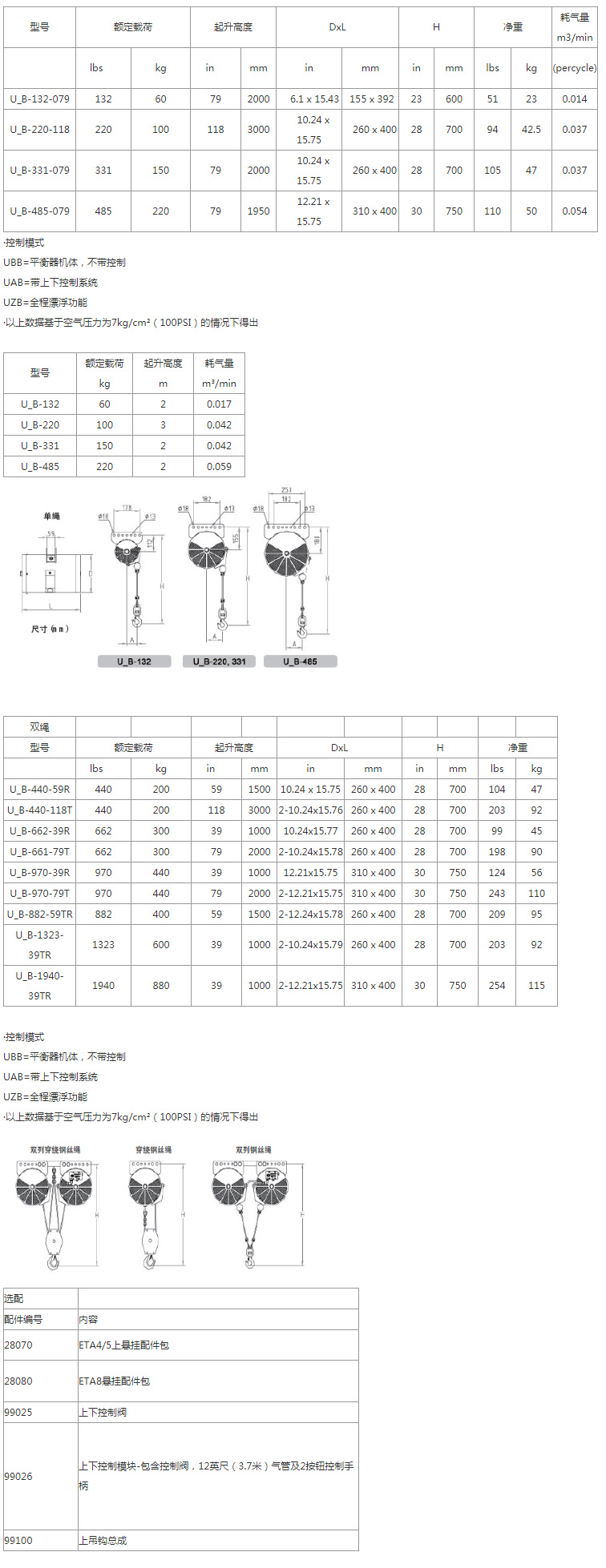 ·标准配置为9米钢丝绳长度