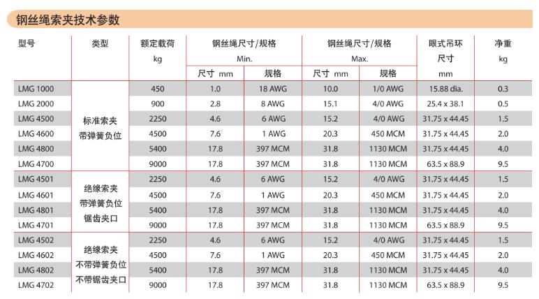●所有型号可适用于范围较广的钢丝绳型号,不需要对索夹改动很多。