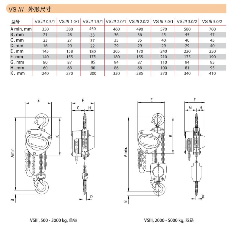 ●标配镀锌起重链条可起到额外的防腐蚀效果。