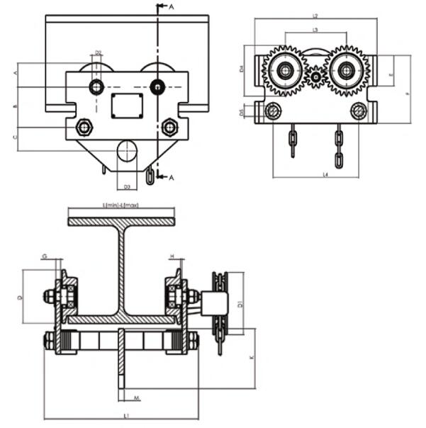 作用:可与任何带有上吊钩的葫芦或者其它装置连接并滑行在横梁上