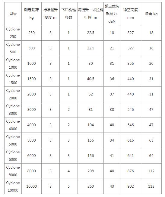 Cyclone手拉环链葫芦 可选防火花选项 |