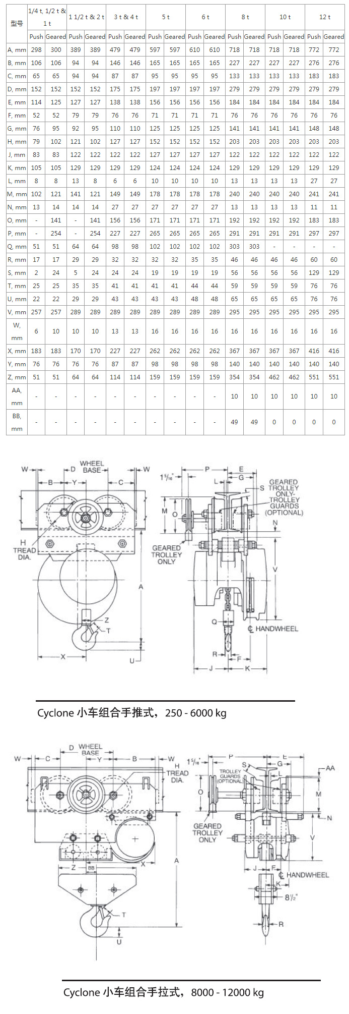 这款CM葫芦具有与Cyclone型手拉葫芦相同的质量与性能。Cyclone型小车组合葫芦拥有更加紧凑的外形和低净空小车悬挂方式。